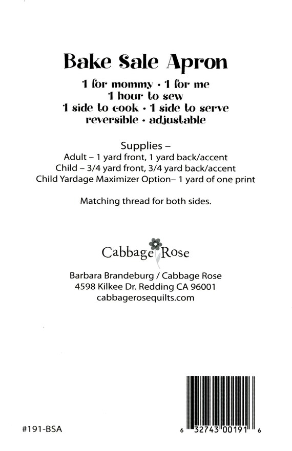 Bake Sale Apron Pattern By Barbara Brandeburg Of Cabbage Etsy Finland
